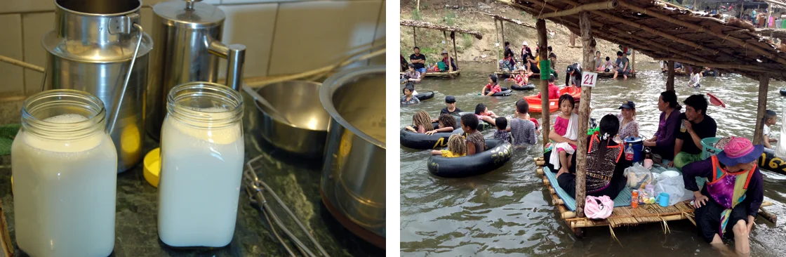 Rae: We went to a fishing and swimming spot for Song Kran the other day, and the kids all jumped into the river. I sat on the bank with Isaac and watched Lisu people having a picnic blast in tiny salas on the water. (Vieng Neur, Thailand)