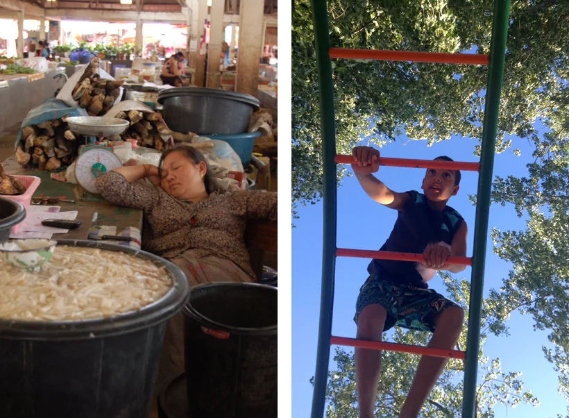 Leaf: The cheapest dinner at the night market- 10,000Kip ($1.30) for a plate as high as you can pile it. (Luang Prabang, Laos)