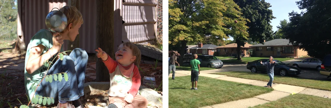 Rae: The Dream Is Now. It's a message for us. This work of art of a house was very close to where Chinua lived when he was around twelve. (Detroit, USA)