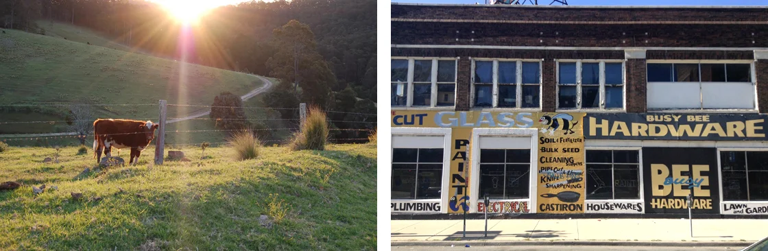Leaf: One of my favourite roads to drive along is 'The Bucketts Way', slowly the conversation changes to be more philosophical and removed from the practicalities of life on this country road. This is one of the sweet scenes we drove past. (Stroud, Australia)